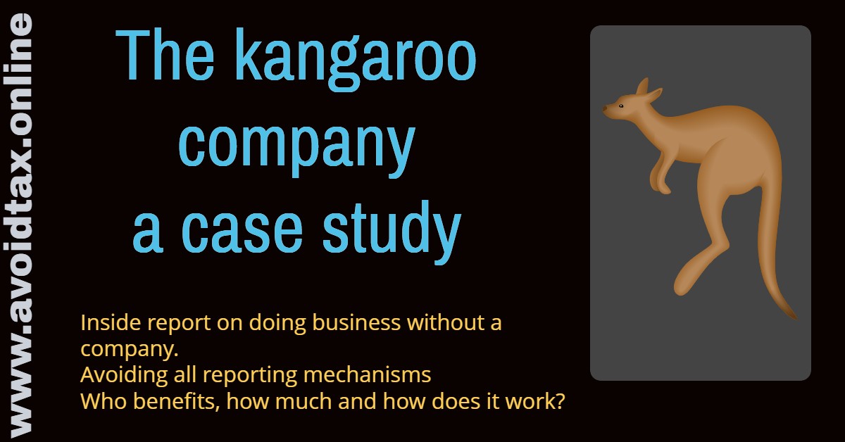 A kangaroo company is a third party that will act with your company to optimize your tax situation. It can be used as an alternative to incorporating your own foreign low-tax company. A kangaroo is an animal that carries a smaller animal. The smaller animal uses existing bigger structures, hence the name of the setup.